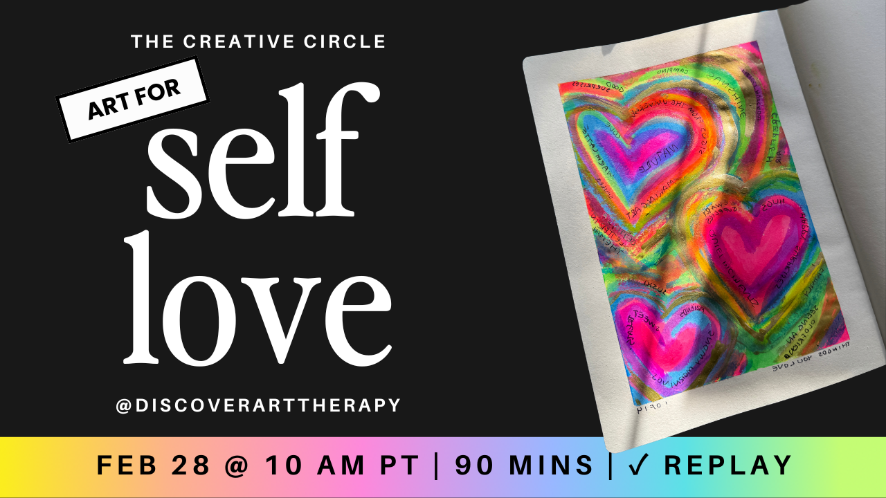 A therapeutic art session to soften self-criticism, celebrate your worth, and create from a place of self compassion.
