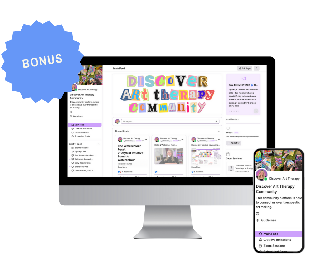 Therapeutic art is a gentle, creative process that helps you explore emotions, soften inner pressure, and connect with your inner wisdom — without needing skill, technique, or “perfect” artwork.