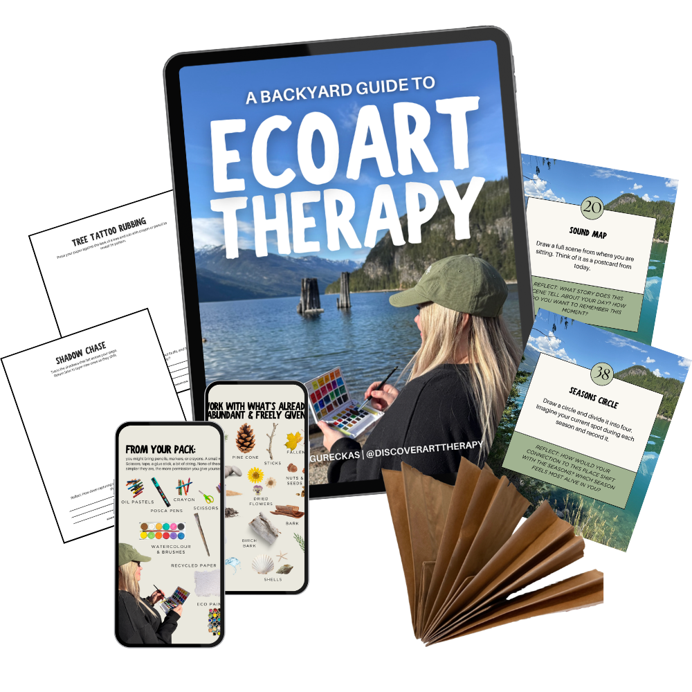 Eco art therapy guide + printable workbook with nature-inspired prompts and worksheets. Take your self reflective art practice outside.