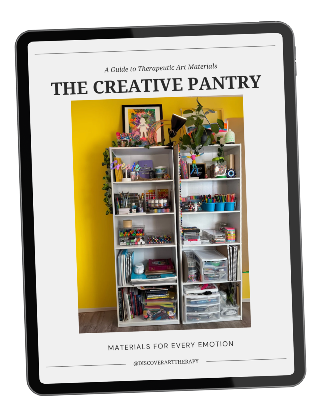 The Creative Pantry is a cookbook-style guide to therapeutic art materials, designed to help you understand how different art tools support self-reflection, regulation, and creative connection. Instead of recipes to follow or projects to complete, this ebook teaches you the building blocks of therapeutic art so you can choose materials with confidence and self-trust.